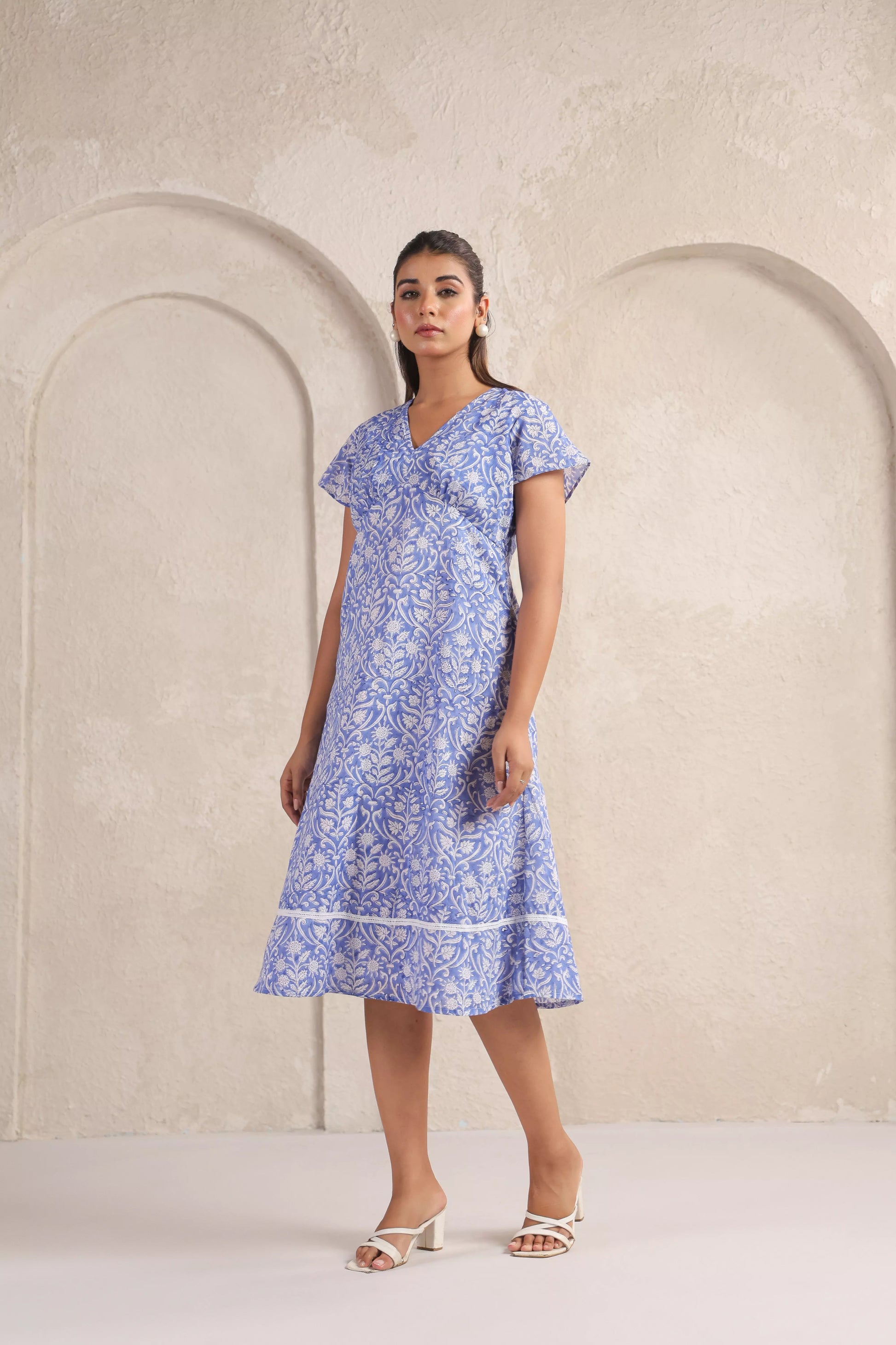 Where timeless handcraft meets everyday ease – the Blue Mirage Sleeved Dress.